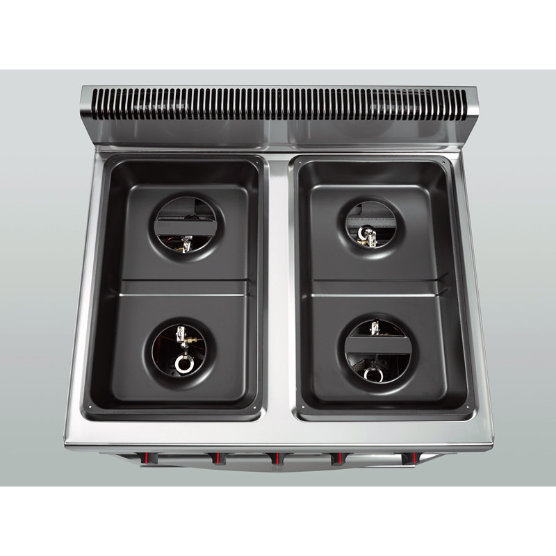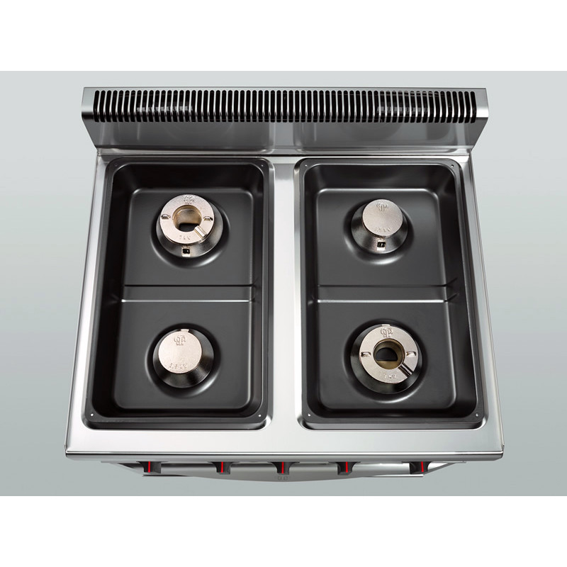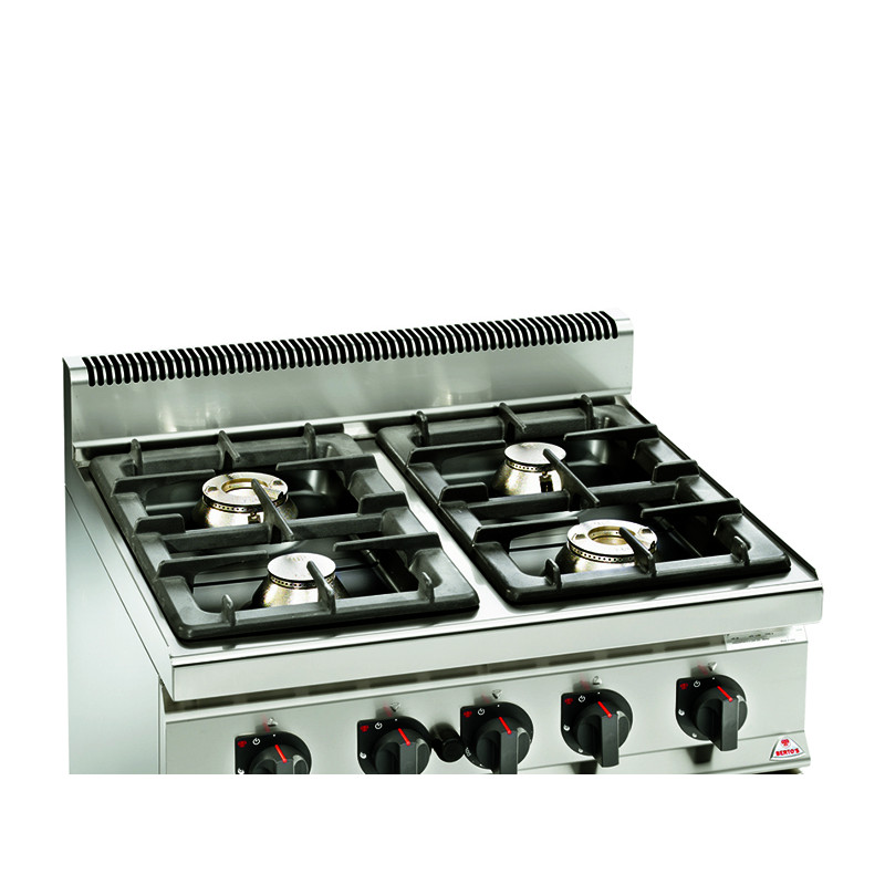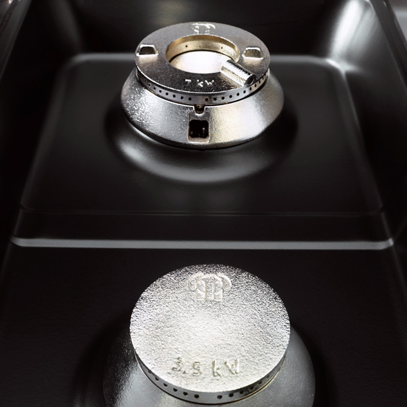 The high energy efficiency allows a gas savings of at least 30% per year as regards traditional burners. The cooking top with rounded edges is completely removable so that maintenance