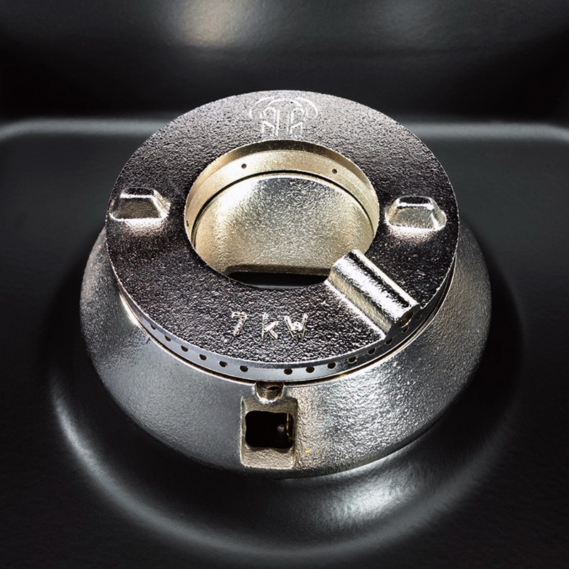 The 3.5 kW and 7 kW burners made of cast iron with high thickness are guaranteed for life.