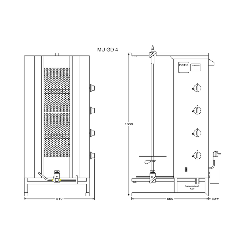 Doner & gyros gas grill "Potis" ORIENT MU GD4