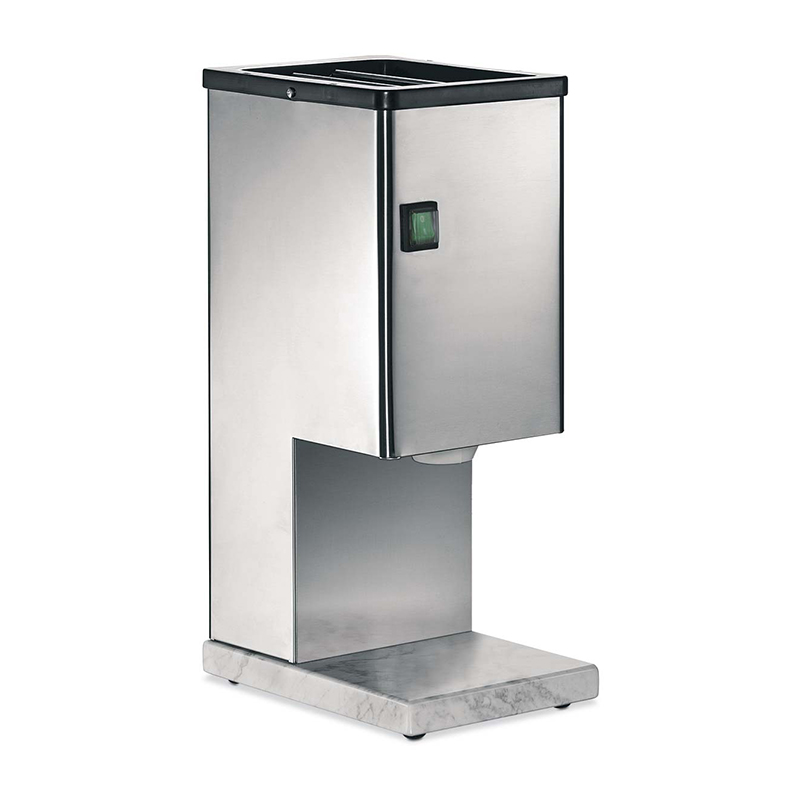 Thanks to the refined aesthetic, the structure and the blades in stainless steel, the base in marble, the powerful and silent gearmotor this ice breaker, made for the professional use, finds its natural employment in pubs, bars, discotheques, restaurants and in all those premises where the preparation of cocktails, fruit and fresh fish is required. The substantial difference with the most traditional ice crusher T60 is in the greater dimension of the ice that, broken and not crushed, has a longer duration before the melting.