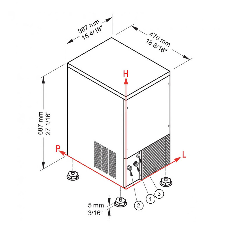 Dimensions: 387 x 470 x 687+ (5 mm legs) mm