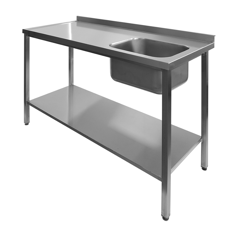 Table with 1 sink and reinforced shelf - deepened surface