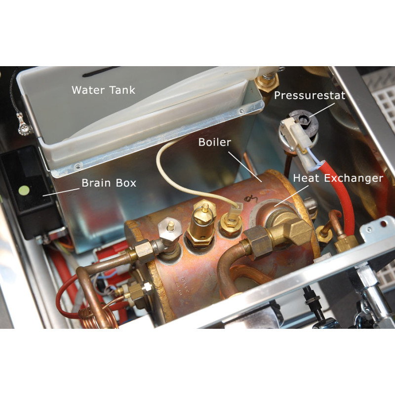 The machine is equipped with a builtin water tank whose level is electronically monitored, and can be easily re-set in order to prevent any trouble caused by mishandling.