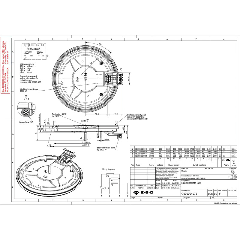 Нагревательный элемент для электрических печей 2600W, 230 В, 22 см